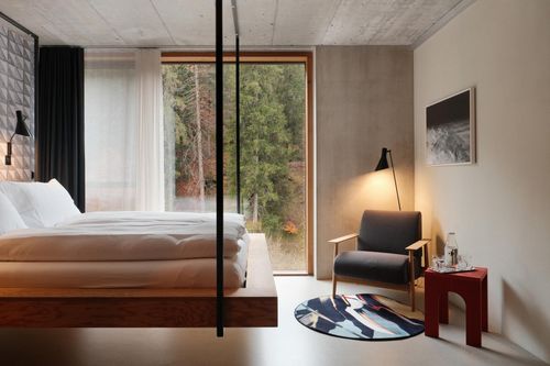 Mitten in den Bündner Alpen erwartet euch ein Designhotel mit rund 57 stylischen Zimmern – ein Rückzugsort für Kreative, Sportler:innen und Teams, die Arbeit, Natur und Kultur verbinden wollen. Holz, Beton und Licht schaffen eine ruhige, moderne Atmosphäre mit Fokus auf das Wesentliche.