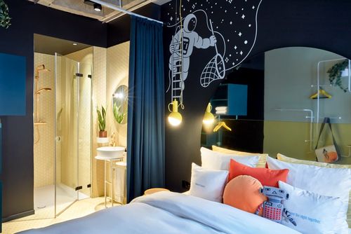The 207 rooms are urban retreats with contrasting worlds – playful retro style meets imaginative utopias of the future. At the heart of the 25hours Hotel The Circle are the NENI restaurant and the Monkey Bar on the 8th floor with a unique view of Cologne Cathedral.