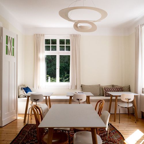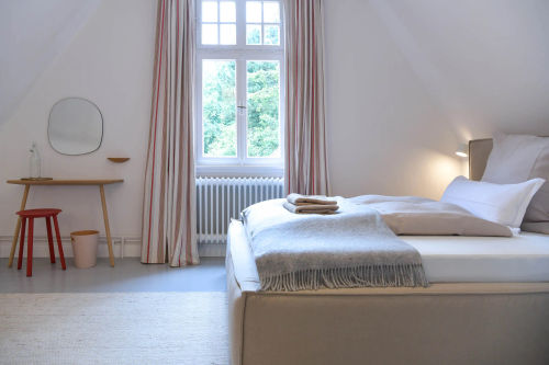 The house is a listed villa with a half-timbered structure. During the renovation, preference was given to natural materials, such as the plaster, oil for the bathrooms and ecological insulation.