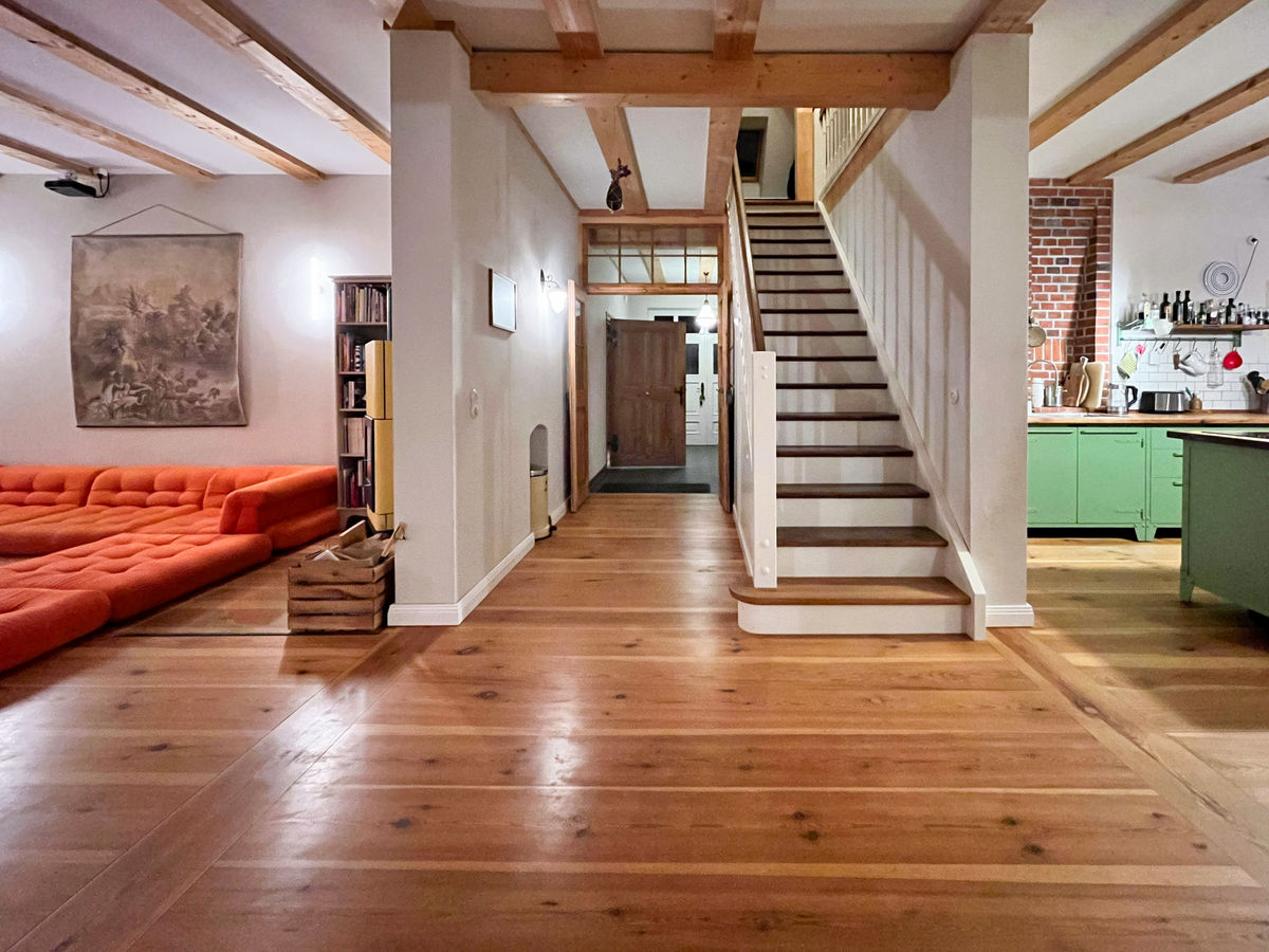 You can swim, bathe or go pedal boating in the Straussee lake. The forests around Strausberg offer beautiful hiking trails and small towns such as Bukow or Altlandsberg have plenty of culinary delights and more to offer. Strausberg Stadt train station is only 1 km away, so it is very easy to get here by S-Bahn from Berlin. Parking spaces are available nearby, 4x charging stations for electric cars are just a stone's throw away