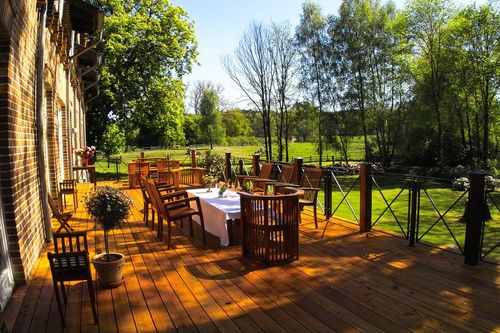 Own spring for fresh water, own biological sewage treatment, own fruit trees (approx. 100), we use solar thermal energy, fire wood gained from our own trees, green electricity