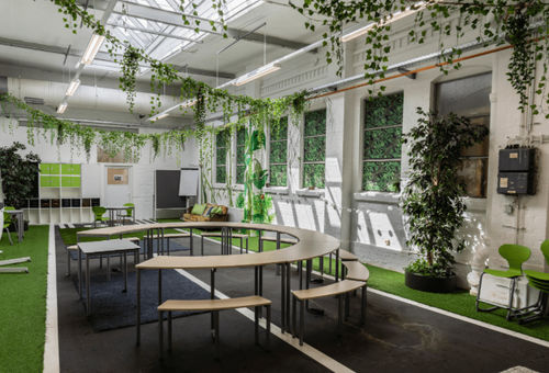 This unusual location has transformed a former industrial hall into a start-up hotspot where large corporations meet start-ups.